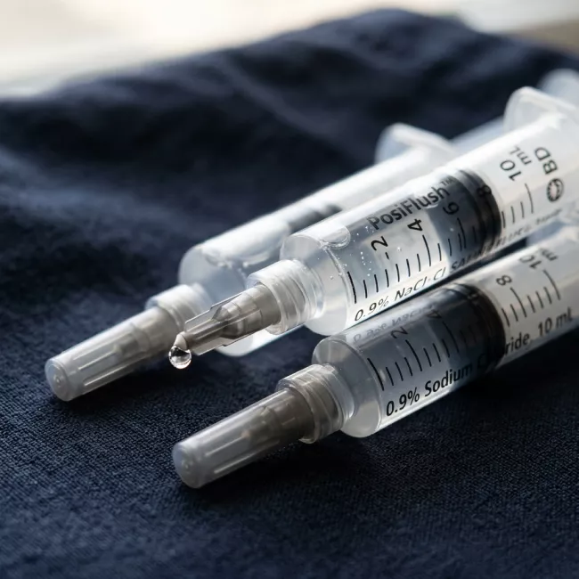 - Pre-filled saline flush syringes designed to help maintain the patency of intravenous lines and catheters